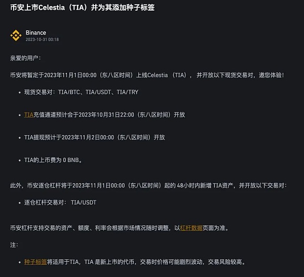 Celestia(TIA)登陆某安是否迎来新的机会?