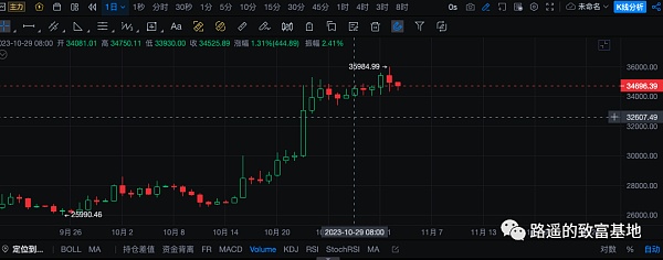 大家好,我是路遥。截止到发文时间比特币报价34600附近。昨日行情在冲刺至新高36000附近后开始回落,于昨日21点回落至34300低点。不难看出在触及上方高位后触发了不少短期交易者的卖出临界点,造成了短线下挫的情况。目前比特币依旧坚守于支撑位34200以及100小时简单移动平均线上方。