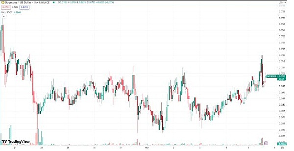 狗狗币最近的价格走势显示出一些有趣的趋势。从过去一周的高点到低点区间来看,DOGE 价格已从 0.071599 美元的峰值延伸至 0.066129 美元的低点。对于狗狗币来说,这种程度的波动并不罕见,但它确实说明了更广泛市场目前的犹豫不决状态。