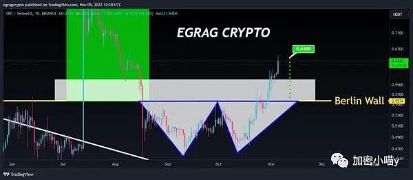 另一位分析师Dark Defender也持有相似的看法。他预测XRP将从0.55美元上涨至0.66美元,并且提出了更高的目标,可能达到1.88美元和5.85美元。