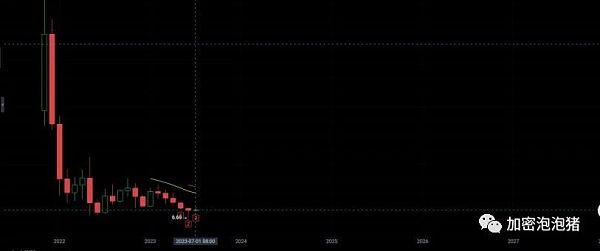 ENS项目是域名领域的领先项目,你早在4月份就提到它,并准备进行投资。不过当时整个加密市场受到大饼价格下跌的影响,导致大部分山寨币都遭遇了严重回调,甚至创下新低点。然而,最近ENS项目表现相对强势,连续几个月出现下跌后,本月月线可能会止跌,这意味着八月和九月可能迎来一波良好的月线级别的反弹。防守位置可以设在本月的低点附近,即8.68美元左右!