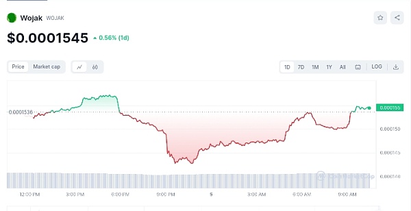Currently, the real-time price of WOJAK stands at $0.000152, with a 24-hour trading volume of $2,914,242. In the past 24 days, the price of WOJAK has declined by 4.21%. According to CoinMarketCap data, WOJAK currently ranks 2187th, with real-time market capitalization and circulating supply information unavailable. The maximum supply of WOJAK coins is 69,420,000,000.