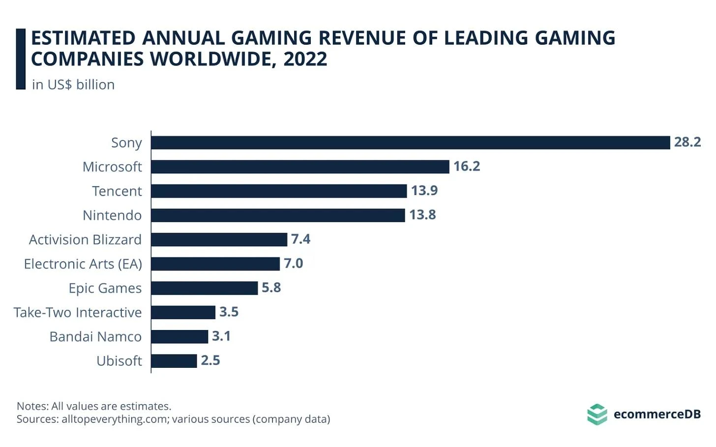 - 全球游戏市场价值约3850亿美元。亚太地区用户是最大的游戏市场,占全球游戏收入的近一半,其次是美国和中国的用户。