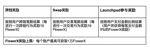 返佣积分渠道:被推荐用户任意行为获得的FlowerX积分奖励(包括交易,跨链,活动参与,下级返佣)都将会返佣给其推荐用户50%的FlowerX积分奖励。