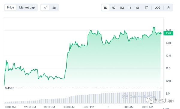 消息公布后,ORDI的价格急剧上涨。根据CoinMarketCap的数据,币安上市消息传出后,其价值飙升了80%。该代币迄今为止是一种价值适中的数字资产,在稳定在13.13美元之前跃升至14.02美元的峰值。截至发稿时,该代币的交易价格为13.8美元。