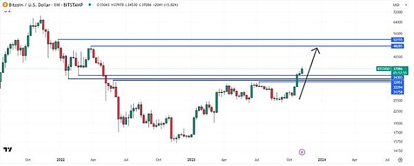 由于对现货比特币 ETF 近期获得批准的乐观情绪,比特币突破 18 个月高点,更广泛的加密市场的风险偏好正在回升。