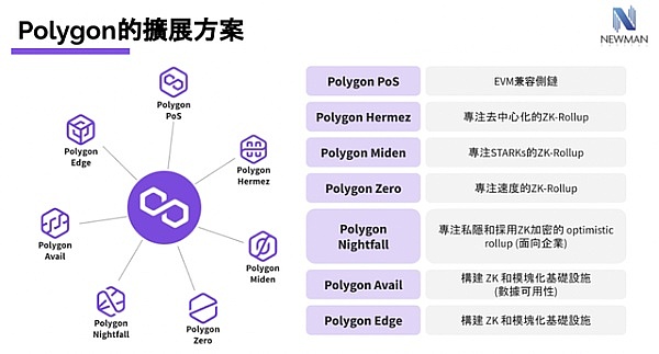 Polygon原名Matic,最早是一个区块链可扩展性平台,称为“以太坊的区块链互联网”。后来随着生态的不断发展,平台从单一的Layer2解决方案,扩展为“网络的网络(Network of Networks)”,旨在解决以太坊主网交易速度和可扩展性问题,且主要在区块链游戏和NFT等领域布局。其实把Polygon归类为侧链也并不十分准确,因为基于Polygon的整体产品矩阵,侧链产品Polygon PoS是Polygon的基本盘,而由Polygon zkEVM、Polygon Miden、Polygon Zero和Polygon Nightfall等组成的ZK Rollup矩阵,则是Polygon的潜在增长点。且在今年发布的Polygon2.0升级方案里团队正准备把Polygon PoS整体升级为zkEVM Validium。由于篇幅限制和主题分类,在此篇文章中我们主要分析侧链产品Polygon PoS,ZK部分将在下一篇中继续阐述。