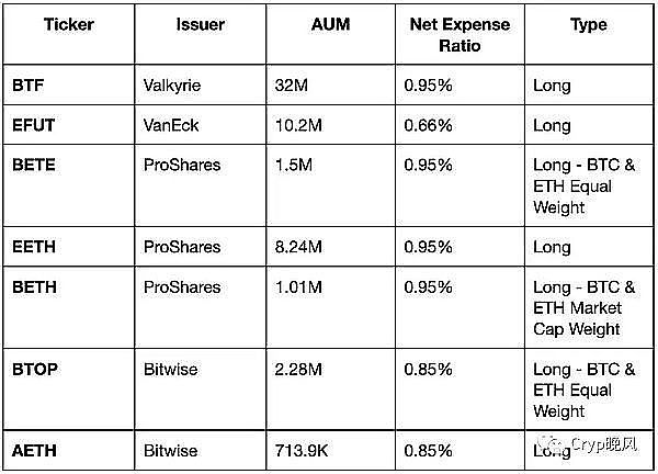 美国顶级以太坊期货 ETF 的关键数据,来源:福布斯