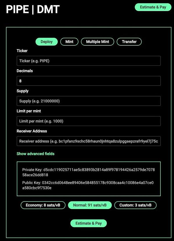 PIPE 是一种原生的比特币代币协议,灵感来自于 Casey Rodarmor 的 RUNES 和 Ordinals 的 BRC-20 协议,主要由 BRC-20 索引器 TRAC 的创作者开发。与 BRC-20 一样,PIPE 包含部署、铸造、转账等三个功能,但不同的地方在于,PIPE 协议是基于比特币的 UTXO,可创建同质化代币和 NFT,具有更高的灵活性。