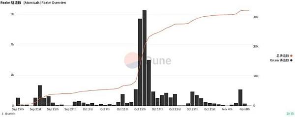 有意思的是,领域通过后缀支持子领域的建设,打开了更多的应用和玩法,比如用户可以在一个领域下注册多个 DAO 进行管理。近期领域的铸造迎来高峰,长度较短的 1、2、3 位数领域遭到抢注,目前领域总铸造数已超过 30000 个。