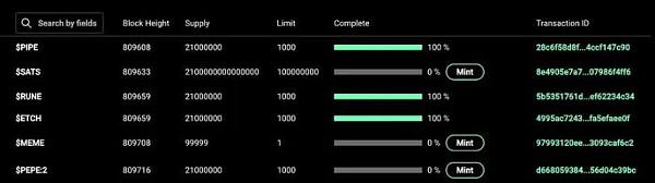 Ordinals 创始人提出的 RUNES 协议尚未上线,由于无法进行去中心化铸造而饱受争议。PIPE 协议在 RUNES 协议的基础上增加了公平铸造的功能,并抢先上线获得了一众社区支持者。