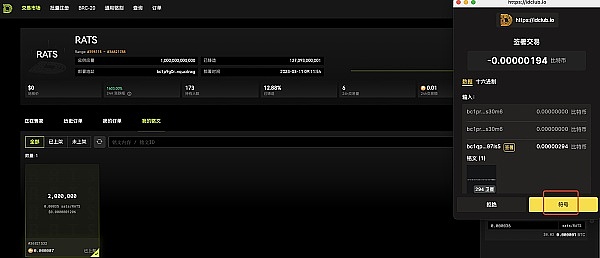 购买时会弹出钱包确认,信息确认无误后点击确认,确认后等待链上确认即可,链上确认后购买的铭文就会显示对应在钱包内。购买完成✅