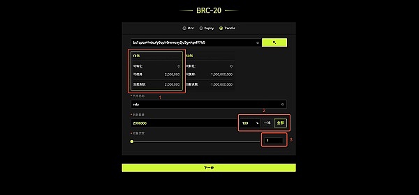 批量次数:就是分成几部分,假如转账数量为100,批次为2,就是有2份数量为50的铭文。