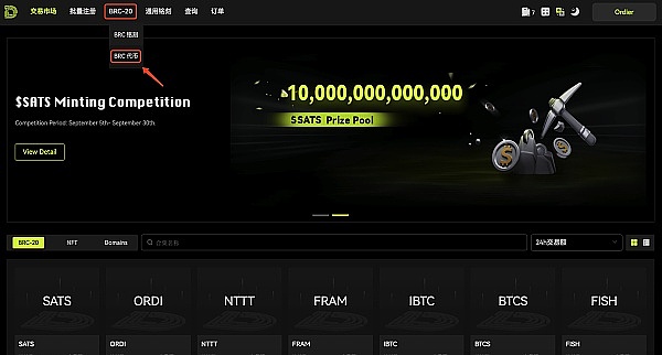 2.页面左上方点击BRC-20,选择BRC铭刻
