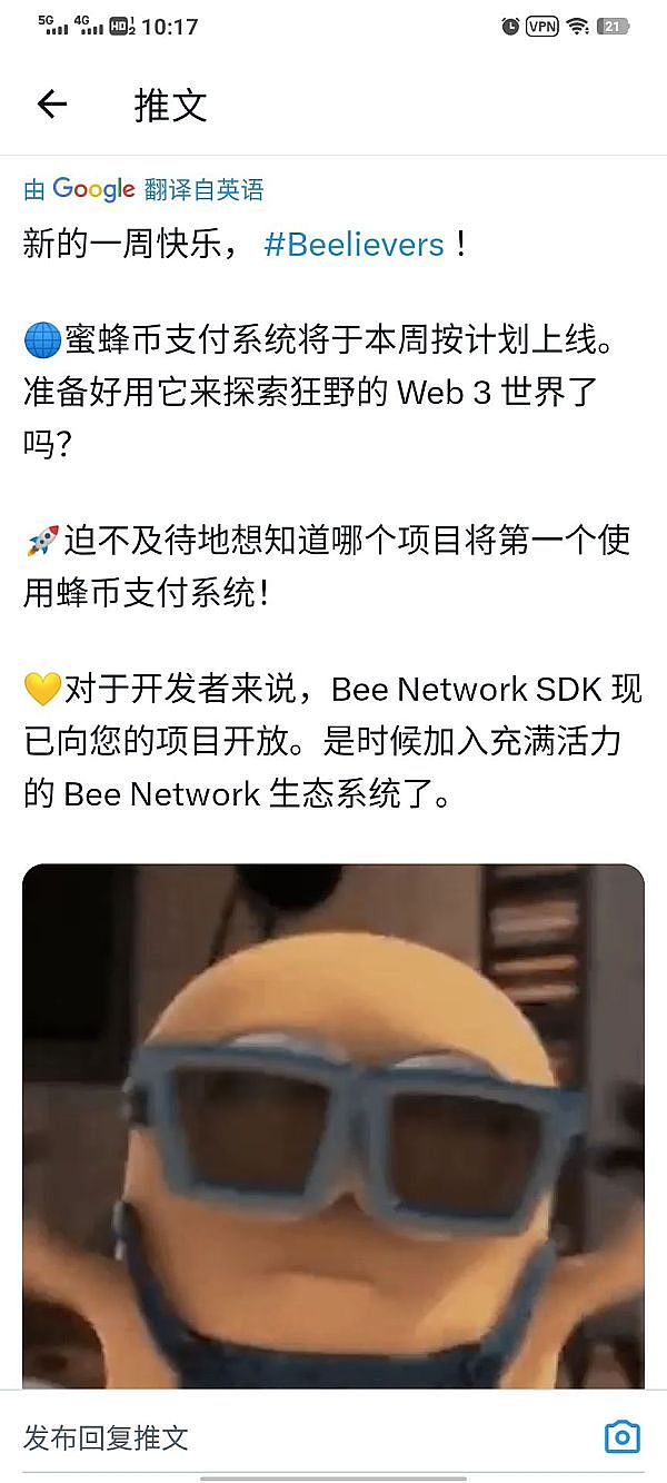 @ Beelievers,新的一周快乐!蜂币支付系统将于本周按计划上线。准备好用它来探索狂野的Web 3世界了吗?迫不及待想知道哪个项目会率先使用Bee币支付系统!对于开发者来说,蜜蜂网络 SDK现在为你的项目打开了。是时候加入动态的蜜蜂网络生态系统了。