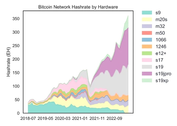 多种因素综合之下,尽管比特币的价格上下波动,但算力的波动相对小,持续向上的趋势更明显。