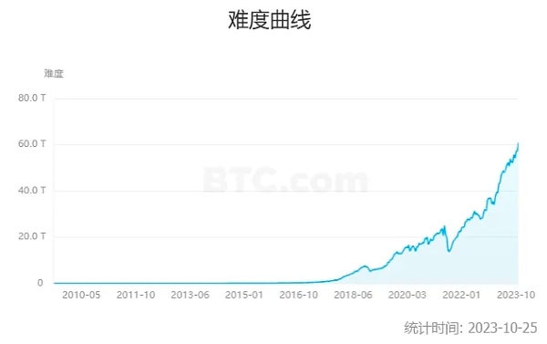 比特币难度曲线,来源 BTC.com