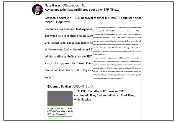 Geraci 也介绍了 19b-4 批准令与 SEC 批准每个发行人的注册声明之间的区别。虽然前者是允许 ETF 上市和交易的程序步骤,但后者对于这些 ETF 的实际推出更为重要。他强调,“美国证券交易委员会仍然需要批准每个发行人的注册声明(S-1,或者 #灰度 的 S-3),这对于实际的发行时间更为重要,并且可能会在晚些时候发布。
