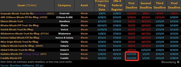 另外,在每个 SEC 决议截止日期临近时,BTC 的价格也都会受到影响,例如11月17日是 SEC 审议 Hashdex、Franklin 现货比特币 ETF 的 First Deadline,最近几天 BTC 的价格就受到了该消息的影响。