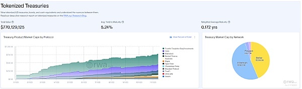 美债是目前 RWA 市场中进展较快的领域之一,目前该市场的规模(TVL)已经达到了 $770 M,并且美债 RWA 市场目前正在以每月大约 10% 的增长速度扩大规模。