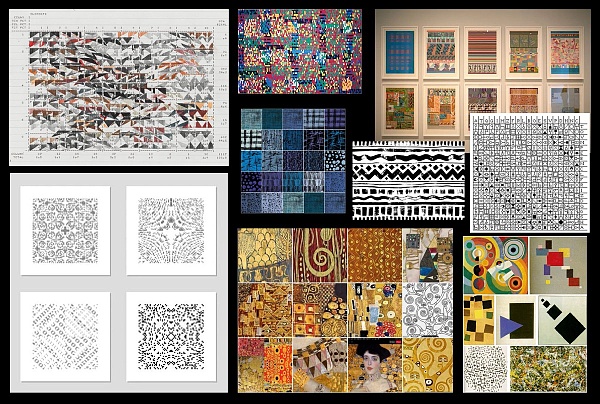 受风格派、计算机艺术学、部落艺术图案、密码学和抽象现代艺术启发,我设计了 10 种不同颜色以及 24 种不同形状的图形集,这确保了组合成的艺术品的多样性。