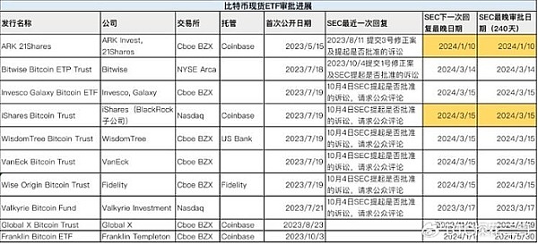 目前 BTC ETF 的申请进展