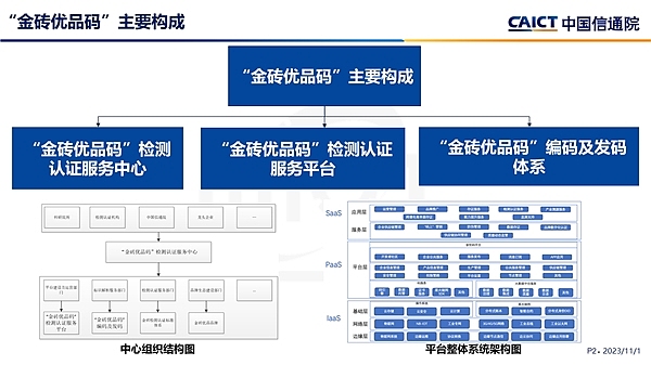 体系构成:“金砖优品码”体系由“金砖优品码”标识解析体系、检测认证服务中心及平台等三部分构成。标识解析体系统一定义“金砖优品码”的编码及发码规则及标准;检测认证服务平台针对不同类型“金砖优品码”及场景应用提供数字化、标准化服务;检测认证服务中心作为服务金砖国家产业发展的公共服务平台,负责标识解析体系及检测认证服务平台的统一运营管理。