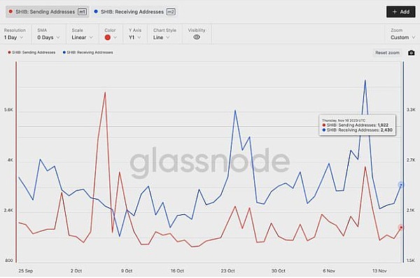 11月15日,著名拳击手曼尼·帕奎奥的援助基金会宣布与柴犬的layer2网络建立合作伙伴关系。Shiba Coin团队昨天分享了一份公告,表示网络的活跃度有所增加。然而,在我们检查Shibarium数据时,并没有看到活动有着明显的增加。新地址的增长速度较低,这对价格没有提供支持。