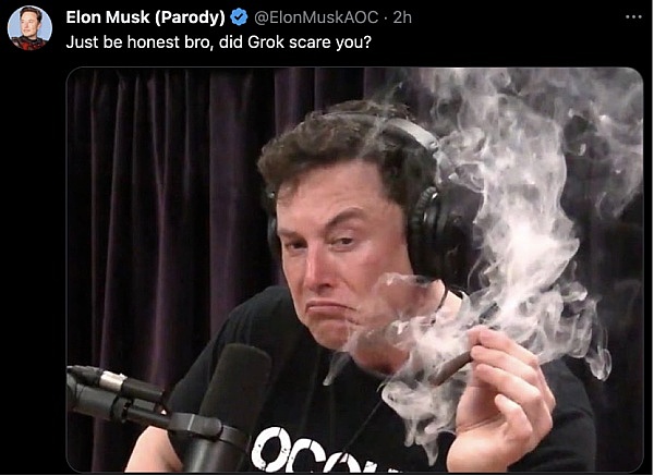 而同样作为OpenAI联合创始人之一的马斯克目前态度未知,因理念冲突于2018年愤而退出、在今年创办xAI。虽然本人没表态,他的高仿号阴阳怪气了一把,很有Grok的感觉:兄弟,坦诚点吧,这是被Grok吓到了?