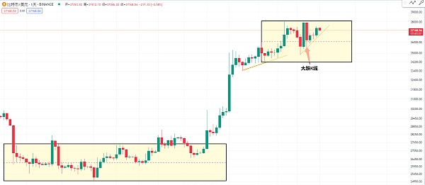 比特币的日线图形态也与2020年的形态相似。在过去的盘整结构中,我们可以看到比特币出现了向上攀升的走势。根据这种形态,我们可以计算出目前的空间,如果再涨35%,可以轻松挑战48000的高点。