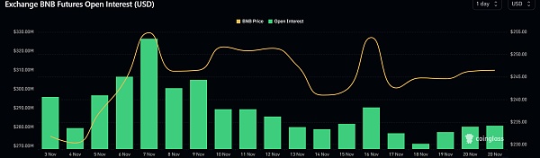 BNB 被评为 11 月 19 日社交活跃币。尽管如此,其价格走势仍然缓慢。