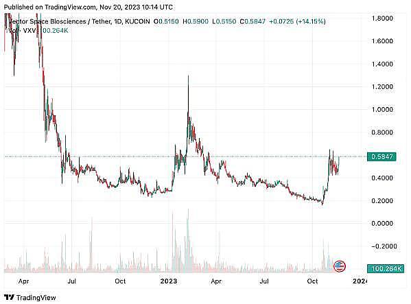 VXV的市值略低于2200万美元,远不及SingularityAI接近4亿美元的市值。然而,在上一次熊市中,$VXV的美元价格从25美元跌至0.20美元,之后开始以更快的速度上涨。