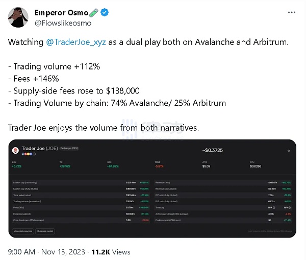 另外一方面,Trader Joe 也一直在推出一些很棒的东西,我正在从他们构建的许多叙事中受益。这也是我密切关注的一个协议。