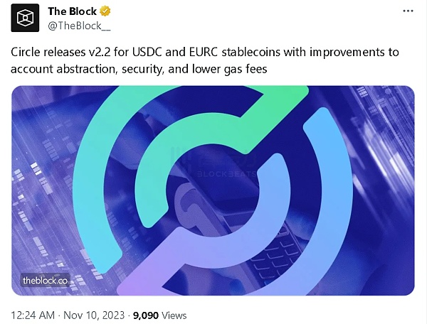 $EURC 是由 Circle 发行的欧元稳定币。他们发布了其 USDC 和 EURC 稳定币的 v2.2 升级。