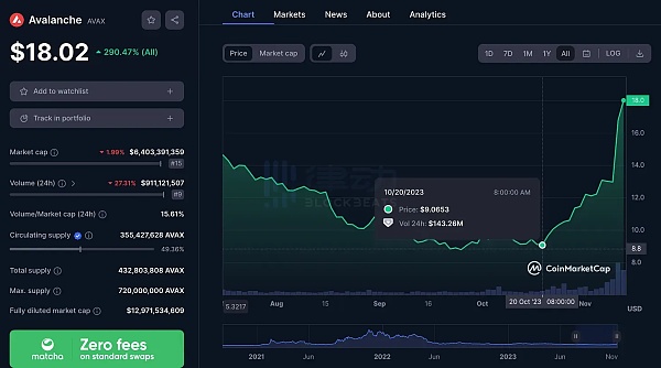 AVAX 从 9 美元迅速上涨至 18 美元,不到 30 天就涨了 100%