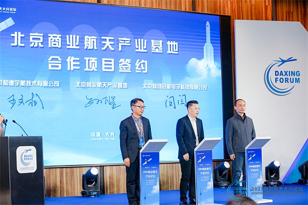 会上,北京商业航天产业基地分别与北京和德宇航技术有限公司、北京惊鸿启航电子科技有限公司进行签约,助力北京商业航天核心制造承载地和卫星网络产业集聚区建设。
