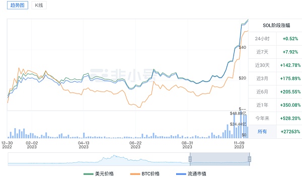 事实上,BRC-20生态在前期确实经历了巨大的上涨,需要经过相当长的时间进行调整和消化。在短期内,对BRC-20的上涨并不需要持乐观态度。因此,市场情绪出现了一个新的故事来吸引资金,进行新一轮的炒作。近期的市场变化表演,SOL有望成为市场接下来关注的焦点。