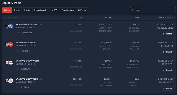 在Velodrome上,USDV/USDC交易对有166万美元的流动性,APR为32.35%。