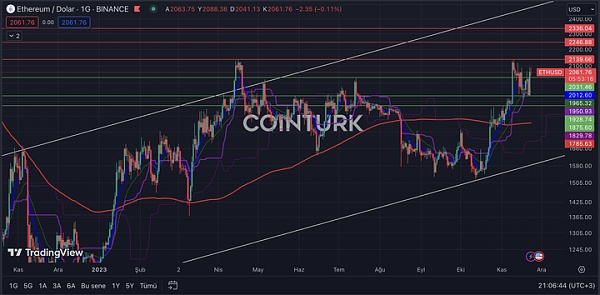 技术分析是投资者,尤其是参与期货交易的投资者在加密货币市场中需要不断关注的重要指标。那么,技术分析为目前交易价格2061美元的以太坊提供了哪些线索呢?让我们详细研究一下图表、重要的支撑位和阻力位。 以太坊每日图表分析以太坊日线图上的上升通道形成结构继续发挥作用。该形态为投资者提供了2022年7月FTX破产后发生的柱形态的重要线索,并继续为参与期货交易的投资者提供重要细节。最近,继币安的发展之后,以太坊也获得了显着的发展势头。 日线图上以太坊最重要的支撑位分别为 2031 美元、1928 美元和 1875 美元。特别是,如果日线收盘价低于 1928 美元的关键水平,可能会导致以太坊动力大幅丧失。 以太坊日线图上需要注意的最重要阻力位分别是 2139 美元、2246 美元和 2336 美元。特别是,如果日线收盘价高于 2139 美元的重要障碍,这将导致以太坊的动力显着增强。