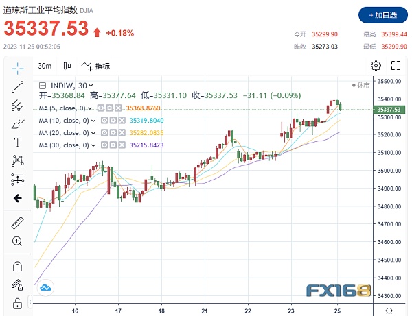 投资者从周四的感恩节假期中恢复过来,周五的交易时间缩短。纽约证券交易所和纳斯达克等美国主要证券交易所将提前于美东时间下午1点收盘。