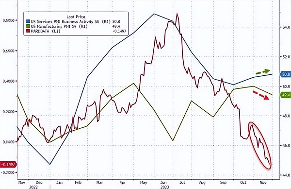 标准普尔全球综合就业指数下滑1.6点,至49.7,略低于扩张和收缩的荣枯线。该组织衡量整体商业活动的指标在11月份保持不变,连续第四个月比50荣枯线高出不到1点。