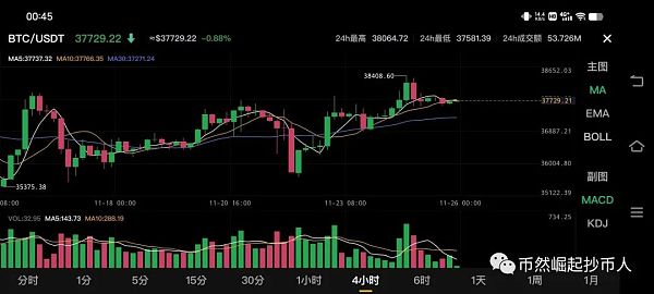 围绕比特币BTC37900-38100附近进场做空,目前37100附近止盈出局。