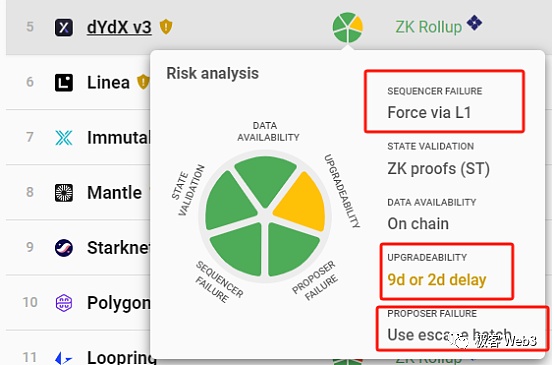 目前绝大多数上线了强制提款/逃生舱机制的Rollup,并不满足上述条件。比如,dYdX的强制提款/逃生舱最长7天延时,但dYdX委员会的合约升级延时仅48小时,也就是说,委员会可以在用户强制提款生效前,完成新合约的部署,赶在用户逃离前把资产盗走。
