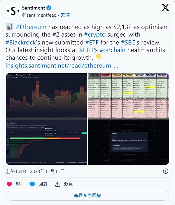 11 月,以太坊突破 2000 美元。贝莱德在纳斯达克提交的文件中确认计划推出以太坊现货 ETF 后不久,价格飙升。链上数据显示,多家大型机构投资者通过购买价值数百万美元的 ETH 来回应看涨消息。
