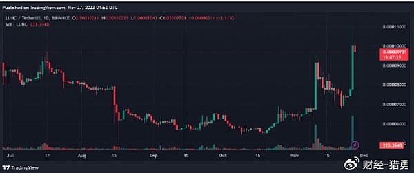 LUNC 的价格在过去 24 小时内上涨了 21% 以上,也成为了热门话题。这意味着截至发稿时该代币的价值约为 0.00009453 美元。这是在它成功设定 0.0001048 美元的高价之后。LUNC 价格于 2022 年 4 月达到 119.18 美元的历史最高价 (ATH),但此后已回撤超过 100%,交易至当前水平。
