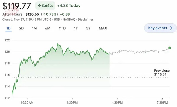 截至11月27日收盘日,Coinbase的股价已达到2022年5月5日以来的最高点,当时收于119.77美元。这一激增使 Coinbase 成为加密货币市场中的佼佼者,在行业挑战中展现了韧性和增长。