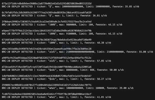 这样,每当发现有新的 BRC-20 代币部署时,机器人就会支付一笔高 gas 费,抢先部署同名代币,并将供应量设置为 1,这样别人就无法获得新部署的代币,并且机器人部署的代币供应量只有 1 枚,无法获得市场流通。