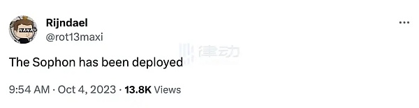 值得注意的是,Rijndael 在加入 Taproot Wizards 之前,曾于 10 月 3 日公开部署过名为「智子」(Sophon)的 BRC-20 代币狙击机器人。