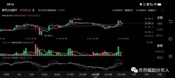围绕比特币btc37900-38100附近进场做空,目前37100附近止盈出局。