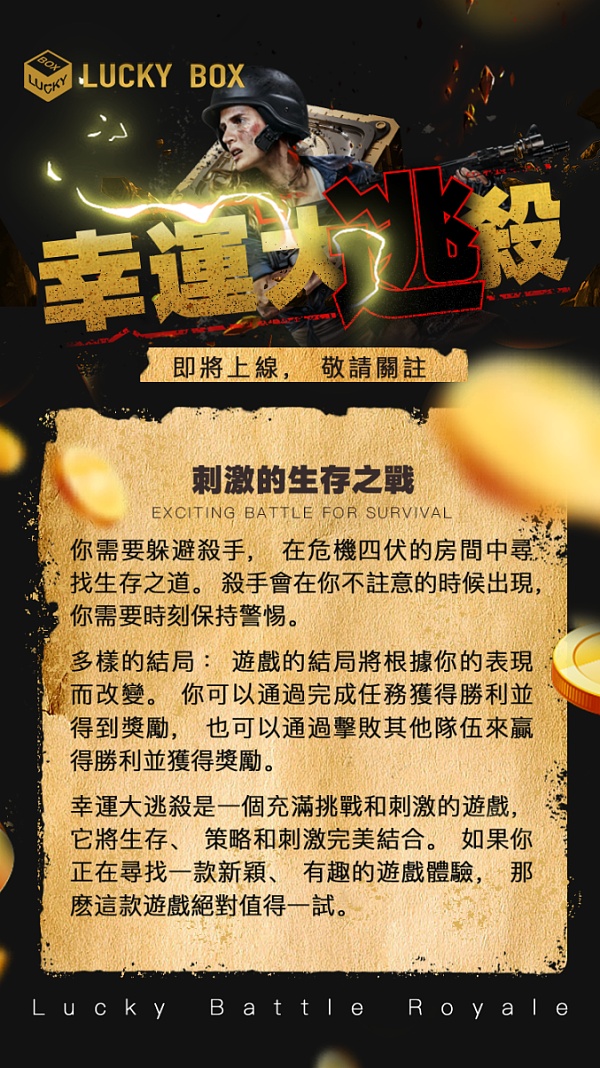 刺激的生存之戳 幸运大逃杀由Lucky BOX聚合生态首发 即将上缐